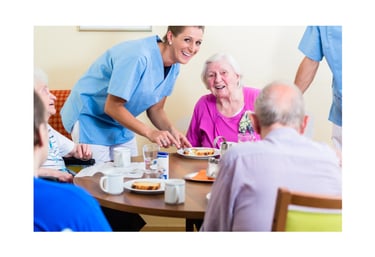 Assistance with daily tasks, medication help, meals, and social activities.